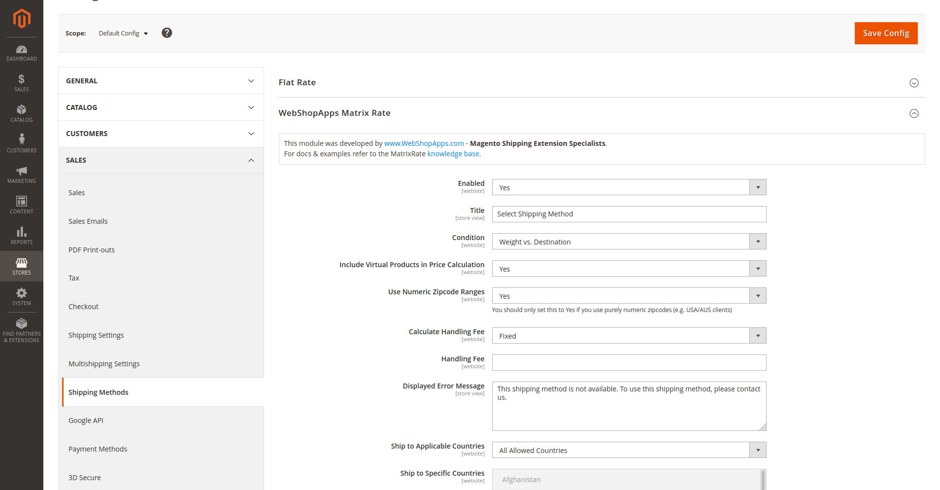 6 - Na seção do MatrixRate, as configurações devem estar assim: