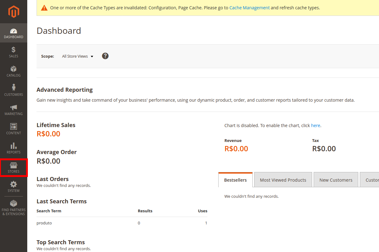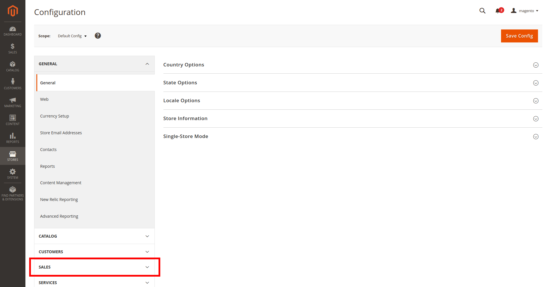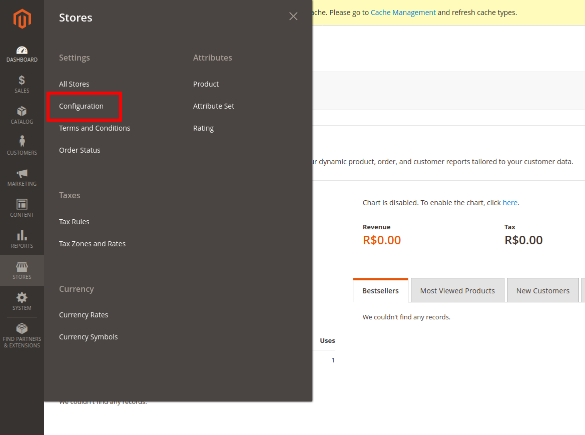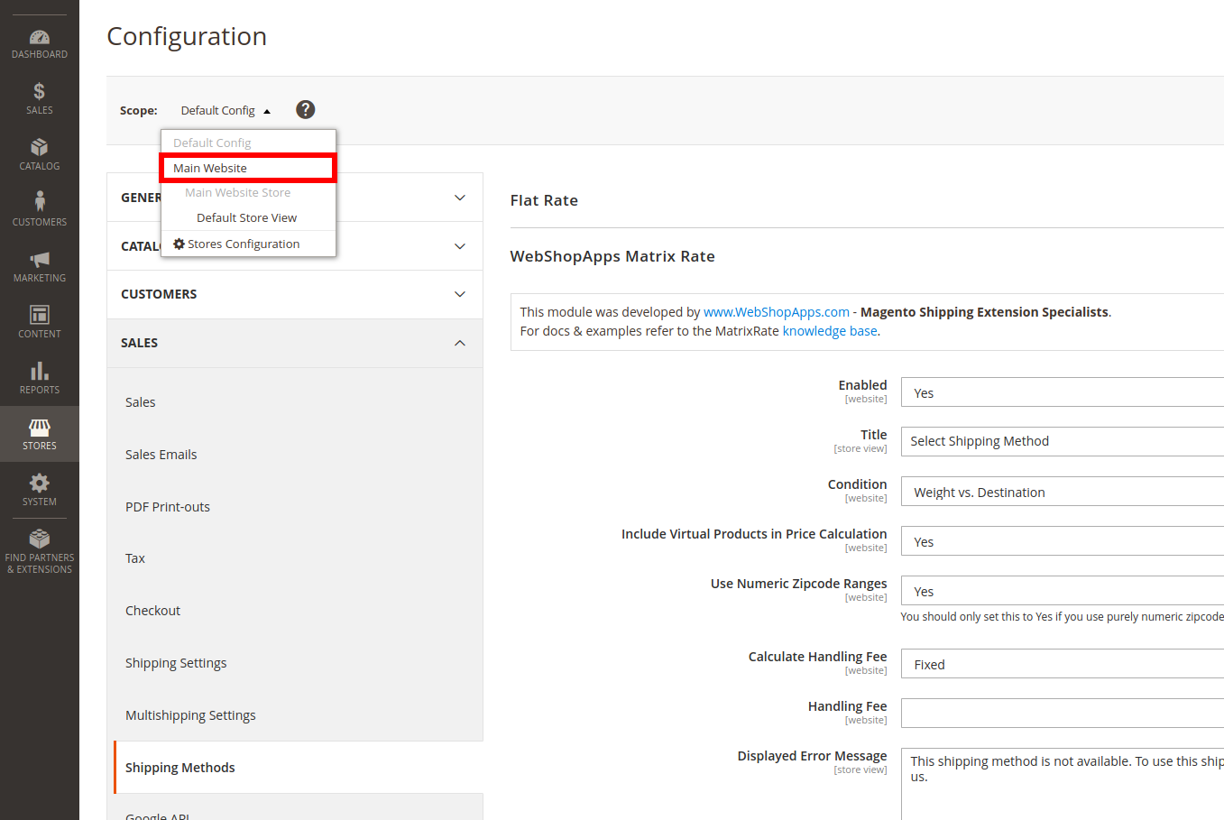 7 - Na parte superior da página, clique em "Default Config" e selecione "Main Website":