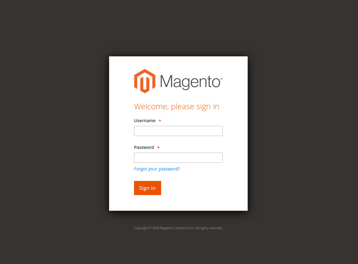 1 - O primeiro passo é fazer login na página admin do Magento: